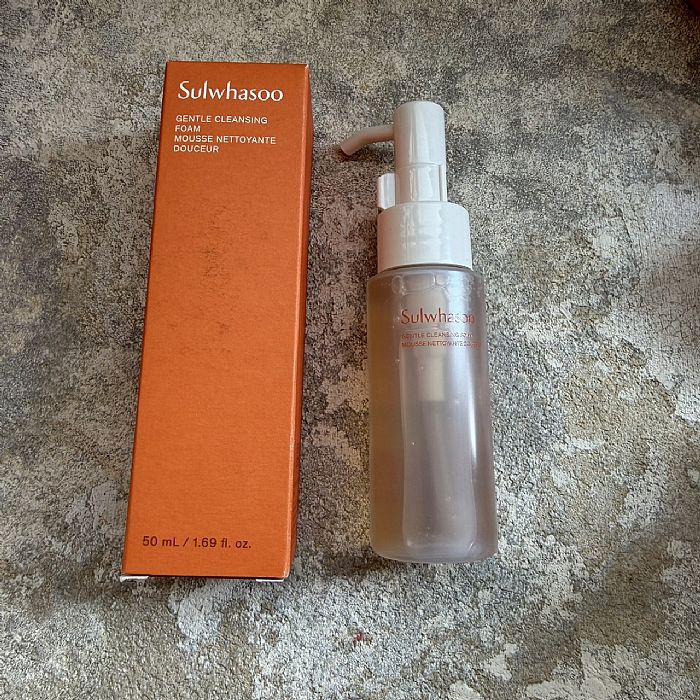 接著再用Sulwhasoo雪花秀順行柔和潔顏泡沫,水凝膠配方打出綿密泡沫,溫和清潔多餘油脂和髒污,帶走一整天的疲憊。