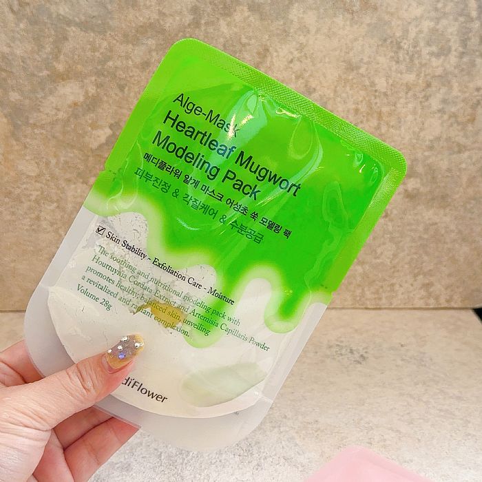 敷起來厚、密、水份鎖得住,能幫乾燥、敏感、疲憊的肌膚瞬間補水、舒緩與亮膚。Medi-Flower 這款的質地很細,調好後貼在臉上是「水嫩膏狀」感,撕下來那瞬間,毛孔真的像被打開喝水一樣。