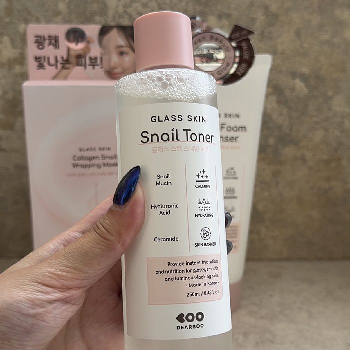 韓國DEARBOO蝸牛原液+玻尿酸+神經醯胺全效修護化妝水是大容量化妝水高CP值之選!蝸牛分泌物濾液舒緩受損肌膚並幫助維持肌膚細緻度,搭配神經醯胺強化肌膚屏障。