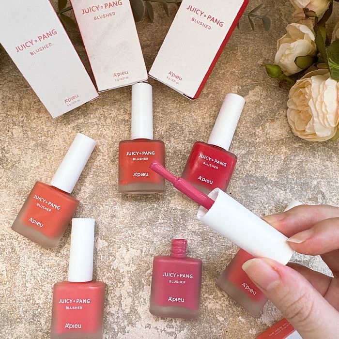 Apieu 果汁水潤腮紅液真的是 CP 值超高的腮紅!比起一般粉狀腮紅,液態腮紅更好暈開,顏色會很均勻,刷上去就像臉頰自然透出的血色,氣色看起來超好,也不會跟底妝卡粉。很適合喜歡輕薄妝感的人使用,而且顯色度剛剛好,顏色自然不突兀,就算多疊幾層也不會厚重或怪怪的。