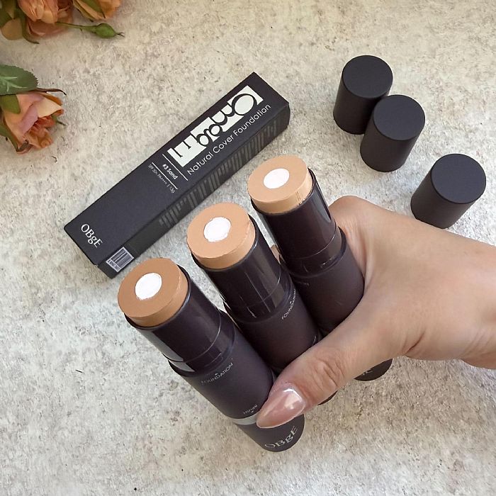 OBgE自然遮瑕粉底棒是系列中最具代表性的產品,被稱為元祖第一粉底棒,提供 1 號象牙白、2 號米色、3 號柔沙色三種色號選擇,並具備 SPF50+ PA++++ 防曬係數。