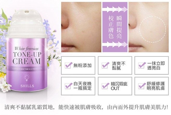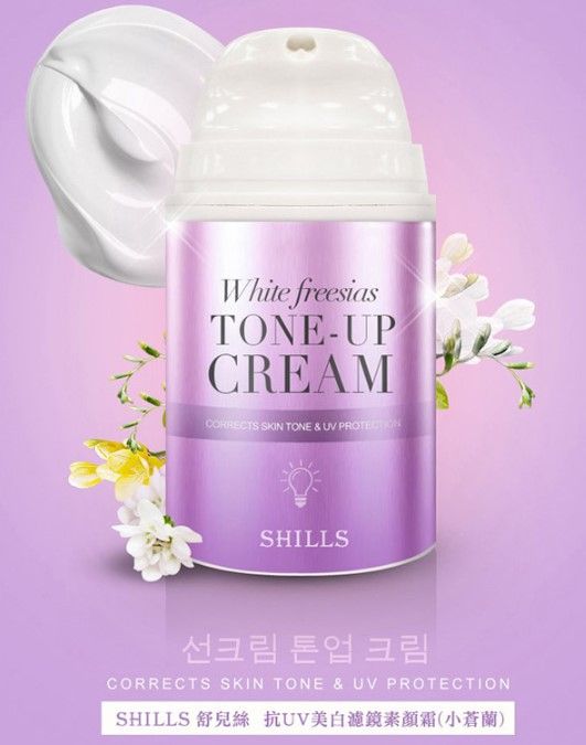 SHILLS 舒兒絲 小蒼蘭抗UV美白濾鏡素顏霜,清爽不黏膩的乳霜質地,臉部及身體都可以使用,30秒校正亞洲人的蠟黃肌膚,一抹立即透亮白,早上多睡10分鐘的小法寶!