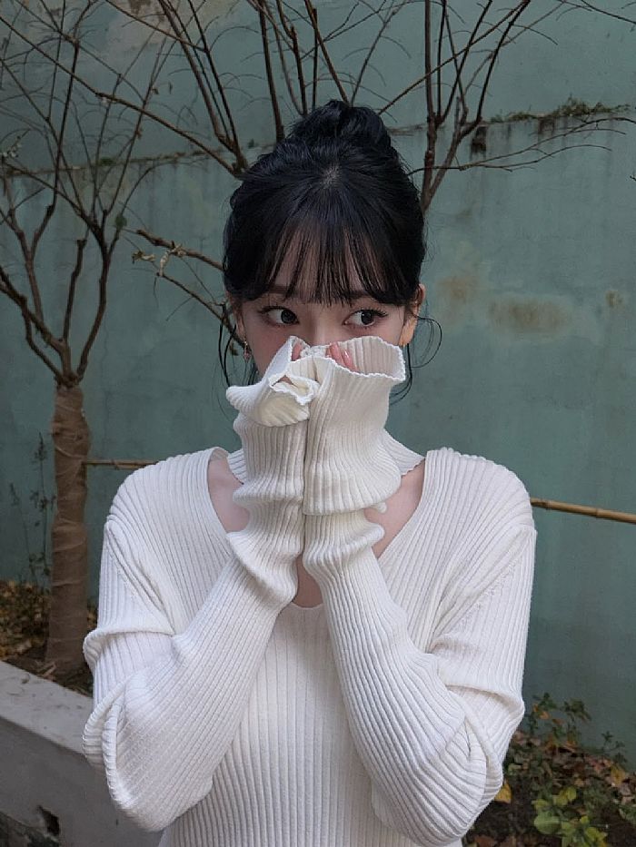 「雲舞白」穿在 Winter 身上,整體感覺很溫柔,但又保留了她本身的個性,不會太甜卻帶有點知性的感覺。針織材質讓造型看起來簡約、俐落,又帶點成熟感,夏天穿會給人一種清爽又知性的氛圍;而換成毛毛外套時,雲舞白的柔和色調讓整體看起來軟綿綿的,很有包覆感,既溫暖又療癒,非常適合冬天,也讓人一看就覺得舒服、好親近。