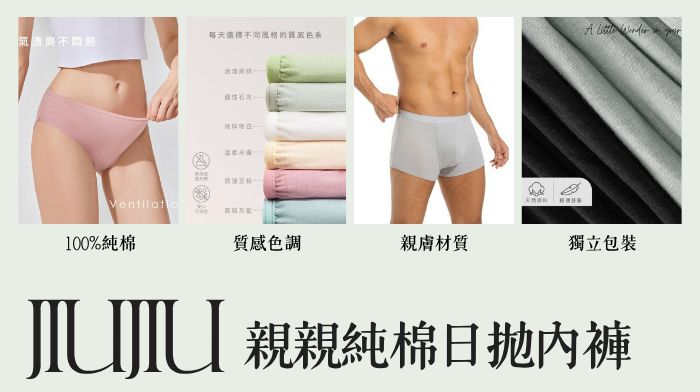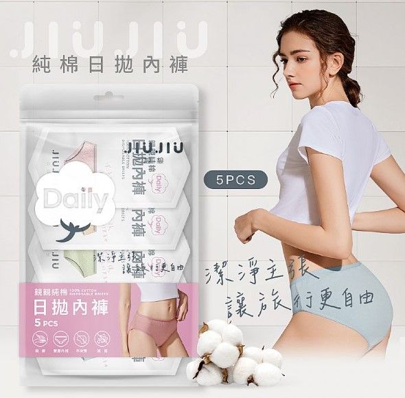 日拋內褲也可以很有質感!JIUJIU 親親純棉日拋內褲,採獨立包裝衛生乾淨,100%精梳棉,無添加螢光劑,穿起來安全又放心。