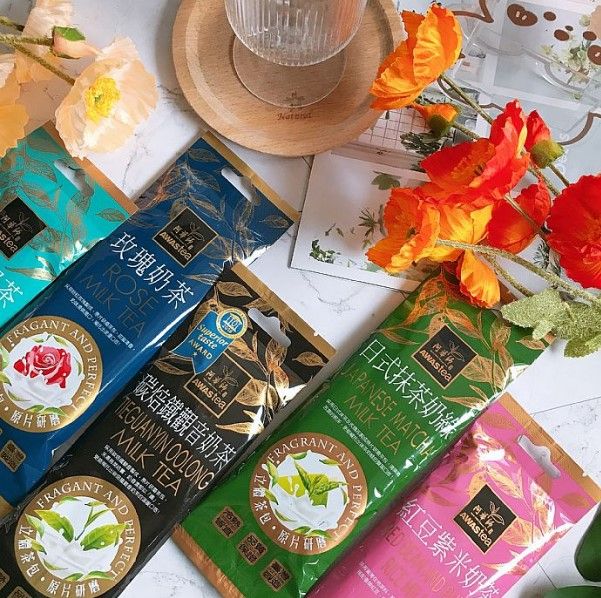 阿華師 奶茶三角茶包,採立體茶包設計,讓茶葉可以完全伸展,品嘗到最完整的茶香,五種口味:日式抹茶奶綠、玫瑰奶茶、日月潭阿薩姆奶茶、太妃糖奶茶、碳焙鐵觀音奶茶。
