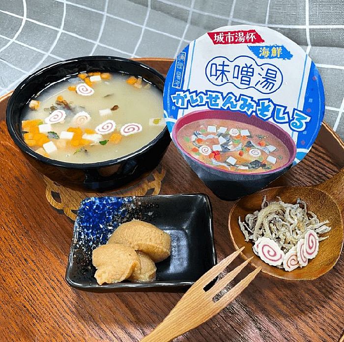 喜歡喝日式清湯的,也可以選擇城市湯杯 原味紫菜湯-香菇風味/海鮮味噌湯,連碗都不用準備,加入熱水沖泡就OK,上班族或露營帶上一杯超方便!
