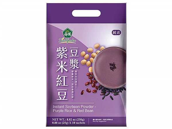 薌園 紫米紅豆豆漿粉,無添加人工香料、色素、甜味劑、防腐劑,素食可食用,1分鐘快速沖泡,順口不甜膩,早上沒時間的話馬上泡一杯,暖胃又可以墊墊肚子,下午嘴饞想來點甜的時候,就是健康又好喝的好選擇。
