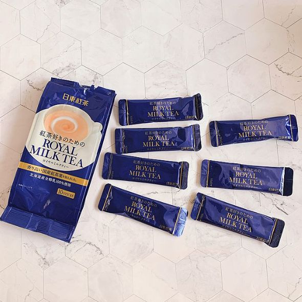 到日本旅遊必買的日東紅茶 皇家奶茶,選日本國產紅茶葉,並使用100%北海道產全脂奶粉,冷熱飲皆可沖泡,喝起來非常香,冷冷的天來一杯超幸福!