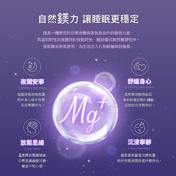 現代人生活步調快、壓力大,常常翻來覆去睡不著,就連夜晚也難以真正放鬆。親親JIUJIU睡鎂人舒眠噴霧,專為需要好好休息的你設計!添加天然鎂元素與舒緩香氛,一噴即釋放柔和香氣,幫助身心進入放鬆狀態。不論是睡前的儀式感、午後的小憩,還是旅行中的舒眠助手,都能輕鬆入眠、安心熟睡。讓你把每一晚,都變成柔軟又療癒的享受時光!(內文向下閱讀)