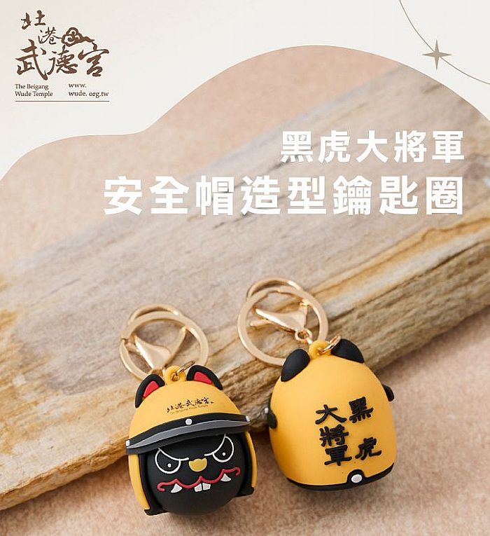 北港武德宮是全台最大的財神廟,帶上黑虎大將軍安全帽造型鑰匙圈,象徵招財守財,安全帽造型設計,寓意出入平安、行程順遂,就好像虎爺守護隨身相伴,日常攜帶加倍安心!