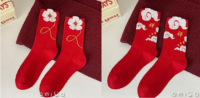 過年就是要來點紅色配件!潮流國風立體醒獅中筒襪,有線條花/立體祥雲兩款,設計吸睛又有好兆頭,襪子材質厚實不單薄!