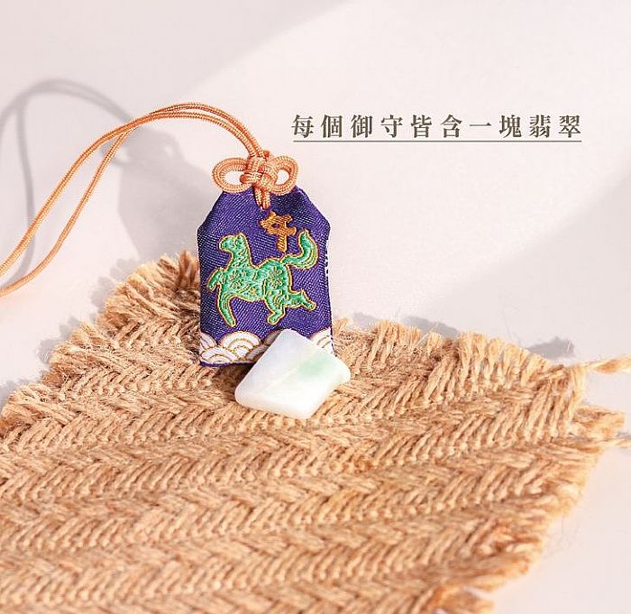 每個御守內皆有一塊翡翠,翡翠隨身配戴可趨吉避凶,御守雙面都有精緻刺繡,細節到位,是一款精緻漂亮的護身小法寶。