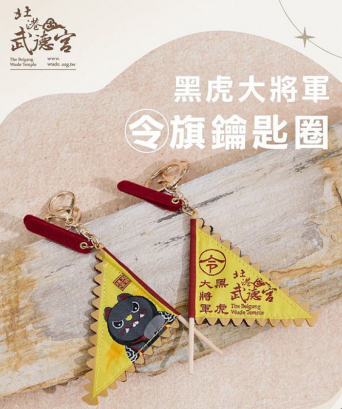 另一款武德宮黑虎大將軍令旗鑰匙圈,還原令旗設計,細節到位、能量滿滿,精緻緹花,質感更升級,寓意招財守財、福氣平安,兩款鑰匙圈不管是送禮自用都適合!