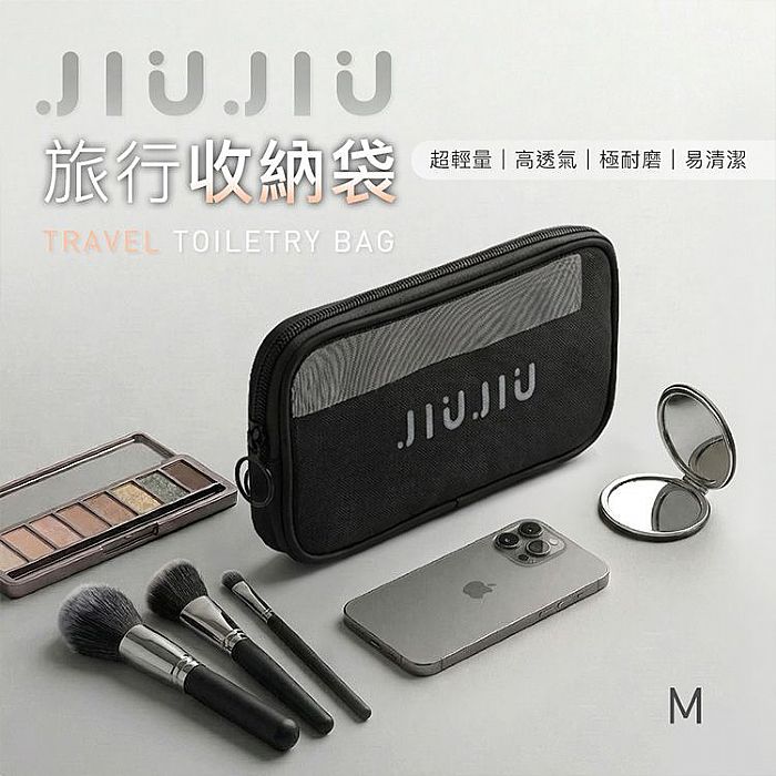 JIUJIU親親旅行收納袋中款是最百搭的尺寸,可以裝化妝品、保養品、刷具。100%尼龍材質耐磨防刮防潑水保護物品安全,內置隔層設計讓小物分類收納不亂跑。