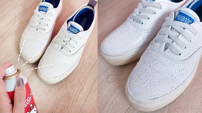 再拿鞋子來測試,真的很速乾、防水、防汙、防霉又防塵!整體用起來,超滿意它的防護效果。