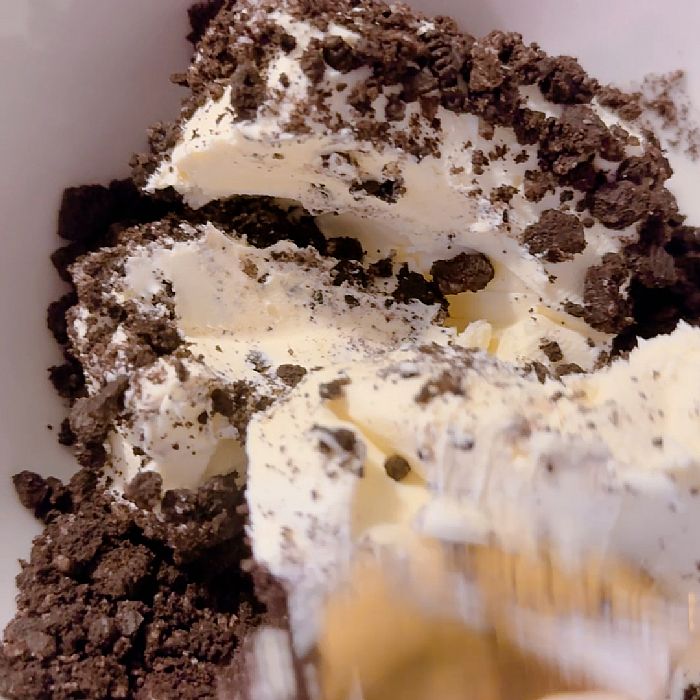 2️⃣ 內餡:把奶油乳酪與奧利奧碎拌勻,放冷凍定型。