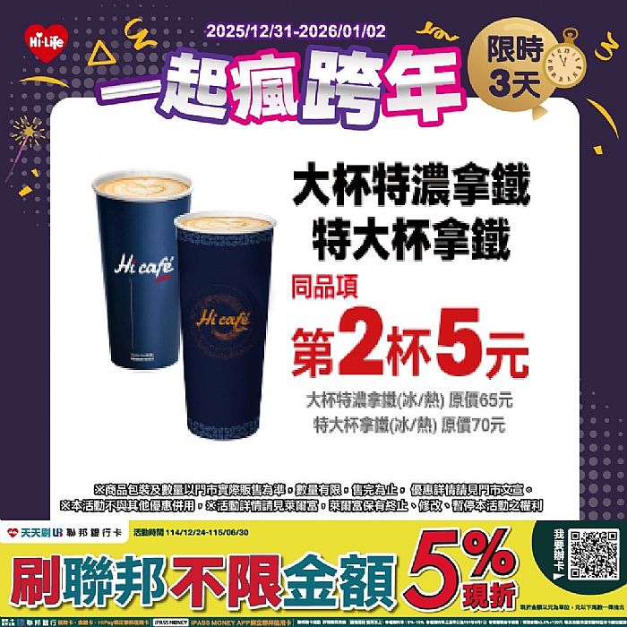 今年跨年夜氣溫下探寒流等級,保暖商品成為民眾跨年必備。像是跨年熬夜、狂歡提神必備的萊爾富Hi café即日起至2026年1月20日,拿鐵系列與摩卡咖啡系列同品項第2杯只要5元,陪伴民眾迎接元旦第一道曙光。冬季限定暖食同樣不能錯過,「玉米濃湯」與「燒仙草」暖手優惠價45元。玉米濃湯以濃郁奶香為基底,加入香甜玉米粒與胡椒提味,喝得到顆粒口感;燒仙草則搭配紅豆、綠豆、燕麥、芋圓,多款配料一次滿足,暖胃又有飽足感。此外,COMEBUY 經典「蘋果冰茶」600ml利樂皇包裝,即日起至2026年1月20日,單瓶32元、兩件59元,成為跨年夜與元旦迎接曙光的清爽選擇。