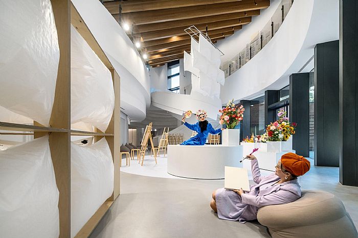 【1F_沙龍大平台】百日萬人輪番上場: 這是展覽的心臟地帶。每一位觀眾的作品都會在此輪流展出,讓你的靈感直接成為美術館的正式展件 !