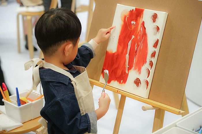 配合4月3日至4月6日兒童節連假期間,勤美術館歡迎全家一起來當藝術家,推出三人同行送小畫布的專屬體驗方案。也在4/4(六)-4/5(日)開放B1自由畫室的落地窗玻璃,成為藝術家們的大畫布,歡迎大小藝術家體驗最無拘無束的創作想像。