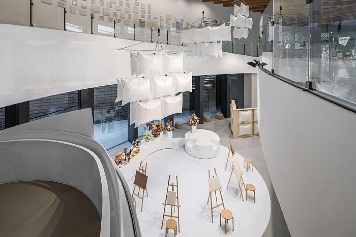 而挑高展場中央懸掛的巨型八米高的「浮空雲朵」塗鴉區,象徵群眾靈感的流動。觀眾可在雲朵表面留下靈魂筆跡,隨著展期推移,四十組的雲朵將逐漸累積眾人的觀察與記憶,匯聚成一件隨時間生長的「活作品」。