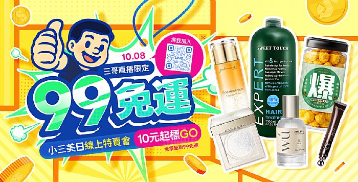 活動三:10/29(三)三哥直播99免運,滿699折50