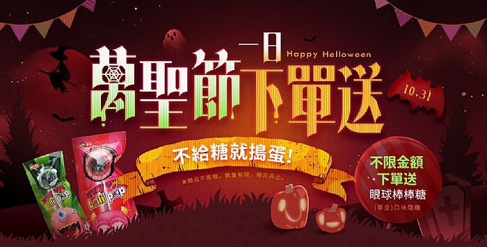 活動:不限金額下單送萬聖節眼睛棒棒糖(單支)口味隨機