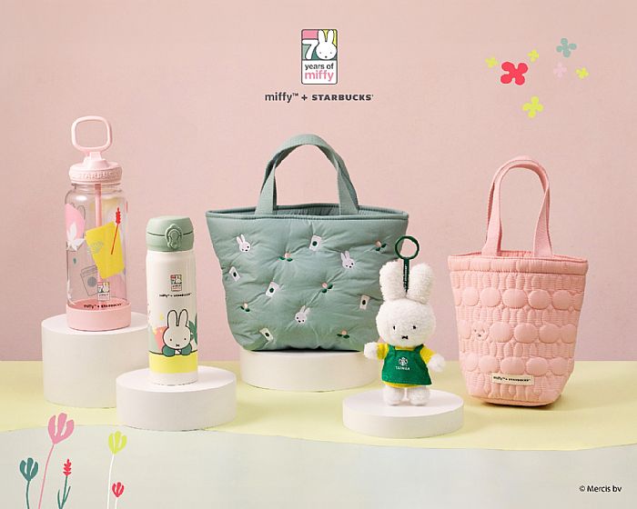 本次特別推出5款在地限定商品,以經典簡約設計結合miffy 70週年元素,為日常增添一抹溫暖與童趣聯名商品,包括大容量又可愛「miffy70冷水壺」、方便攜帶「miffy70隨身瓶」,風格滿分「miffy70提袋」和「miffy70隨行杯袋」,以及本次必收藏miffy身穿星巴克綠圍裙「miffy70綠圍裙吊飾」。