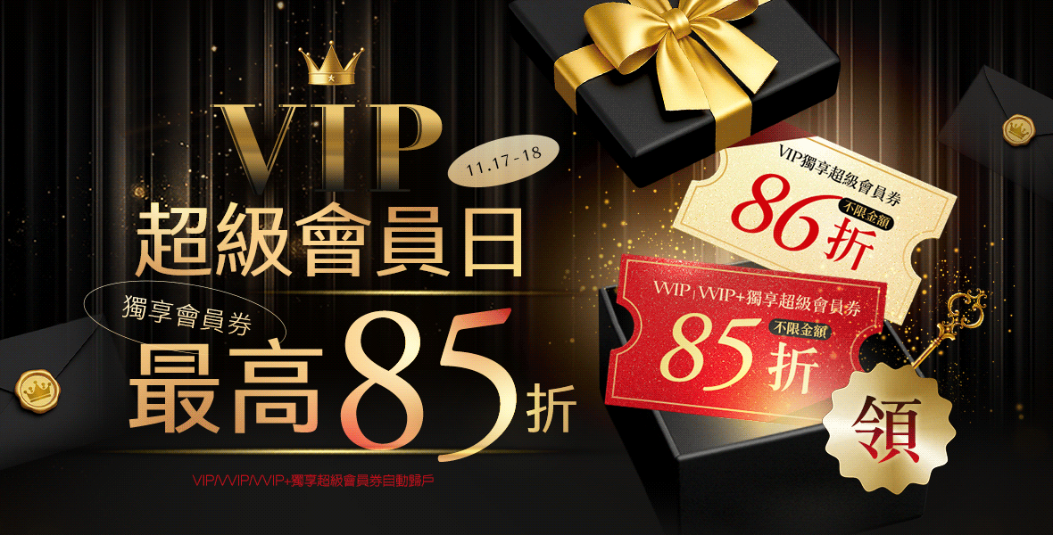 活動二:VVIP獨享超級會員券-不限金額85折!