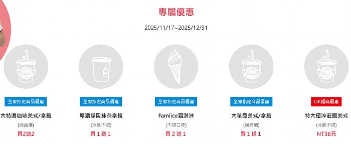 2.享全家咖啡、霜淇淋和OK超商等專屬優惠。
