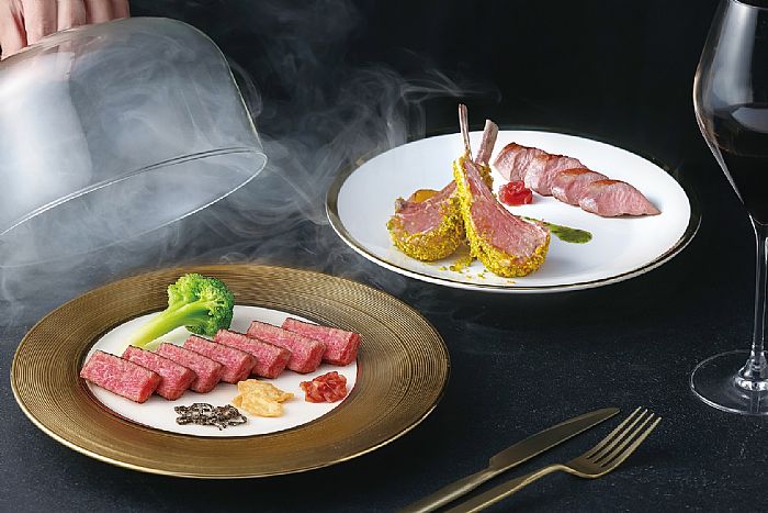 年末約會搶先訂位,為戀情添柴火加溫,夏慕尼即日起推出新套餐,《煙燻澳洲和牛盛宴》主餐可選擇煙燻和牛,主廚以獨特煙燻技法料理,香氣迷人的澳洲和牛,於鐵板上高溫炙燒,瞬間鎖住油花香氣。搭配蒜片、昆布鹽與紅酒洋蔥,層層堆疊出豐富口感,每一口都是煙燻香氣與和牛脂香的完美平衡。另一道主餐選擇法式羊排佐薄荷醬,以鐵板香煎封存肉汁,佐薄荷醬平衡羊排油脂,最後再以海大蝦與鮭魚雙海鮮收尾,富有鮮韻。