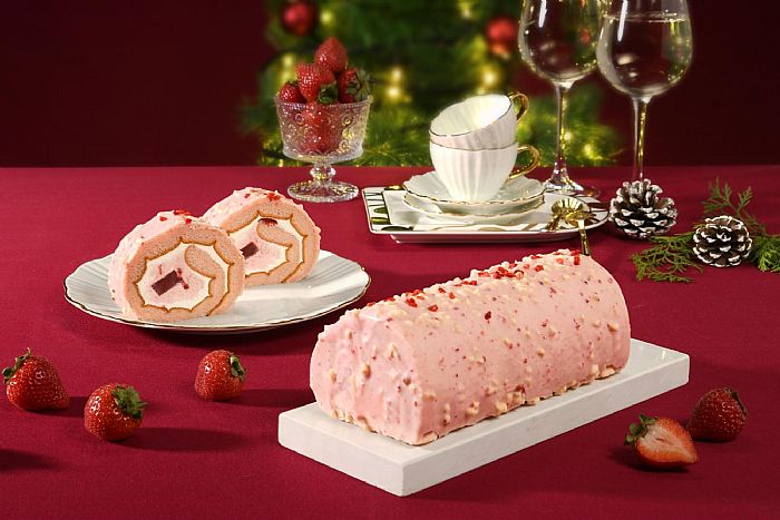 同場加映「戲雪尋莓生乳捲」粉色泡芙蛋糕上點綴的是如同粉紅寶石一般的覆盆莓果粒,點綴上清新的糖粉在表面,內餡捲入經典北海道奶霜與草莓凍奶霜,品嚐專屬於冬季的莓果風味。聖誕儀式感甜點則推薦全新「開心果覆盆莓慕斯」,以開心果馥郁香氣化身滑順的慕絲,內餡融合充滿莓果香的覆盆莓,在冬意中添上清新與酸甜。