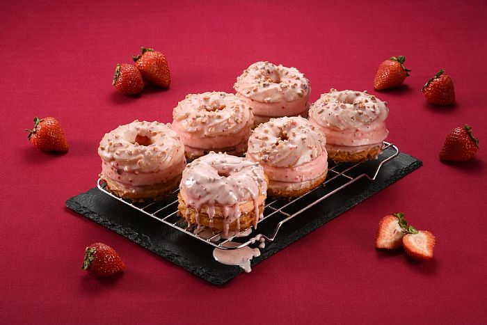 「法式甜甜圈泡芙-草莓」口感介於甜甜圈和泡芙,外層酥脆、內層Q彈柔軟,批覆上帶有脆皮口感的草莓巧克力,粉嫩少女風,美味又吸睛!還不夠?為餐桌妝點聖誕氣氛小點,來亞尼克門市、官網購買任3款聖誕糖霜餅乾,即贈「聖誕糖霜餅乾-微笑雪人」乙片,享受濃郁奶油香氣與脆口清甜滋味。