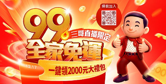三哥直播限定!跨年狂歡99全家超取免運