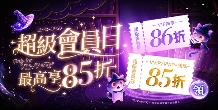 Only for VIP/VVIP~活動一:VIP獨享超級會員券-不限金額86折!