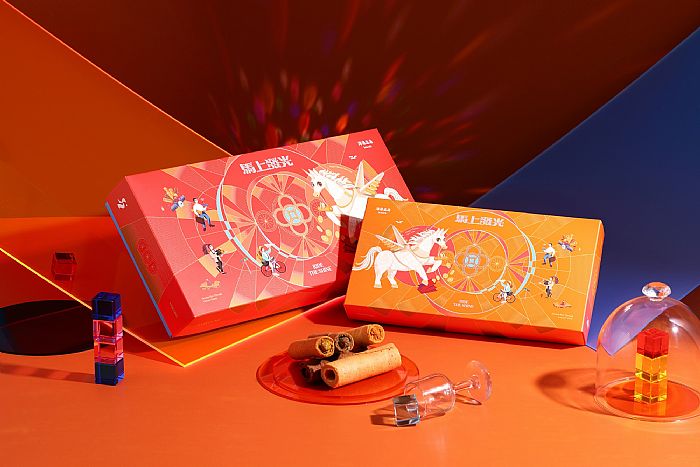 海邊走走今年以馬年的奔騰意象延伸創意,推出「馬上發光 RIDE THE SHINE」系列禮盒。以象徵馬年新局與前進力量的「馬」為靈感,轉化為寓意稀有、具影響力並承載夢想的「獨角獸」主視覺,將傳統寓意與現代想像巧妙融合。禮盒設計以此精神為核心,傳遞每個人在新的一年都能如奔馳而來的獨角獸般成為自己的主角,勇敢閃耀、綻放獨特光芒。本次系列同步推出大氣澎湃的「海有財」與小巧精緻的「海有福」兩款新年限定蛋捲禮盒,無論送禮給大家庭或與三五好友共同分享,都能傳遞滿滿祝福與儀式感。