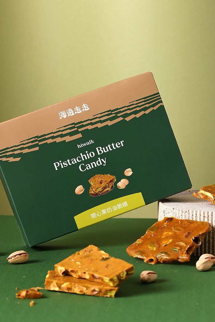 繼海邊走走以開心果愛餡蛋捲引起風潮後,今年再推新年話題單品 「開心果奶油脆糖」,以清脆不黏牙的金黃脆糖為基底,內裡裹滿香醇開心果仁,開心果濃郁的堅果香氣與奶油焦糖的甜香完美交織,脆糖為片裝形式,「掰」開來一人一塊、與三五好友共享,為年節團聚時光增添歡樂氛圍,以春節最不可或缺的零嘴,從開春就能收穫一整年的好心情!