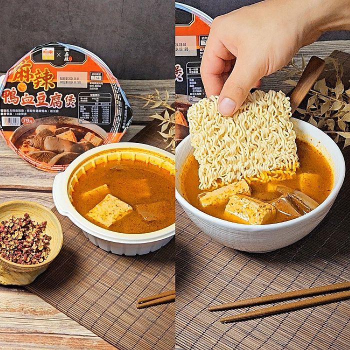 與麻辣品牌椒房殿聯名的「麻辣鴨血臭豆腐」,被網友狂讚「好吃到辦公室同事會叫你再去買」。鴨血滑嫩,豆腐吸滿湯汁,開蓋瞬間香氣直接炸出來!湯底麻得香、辣得剛好,喝到停不下來。老饕激推隱藏吃法:直接加入泡麵,秒變一鍋小火鍋,超有飽足感。因為太熱門,常常一上架就被掃光。