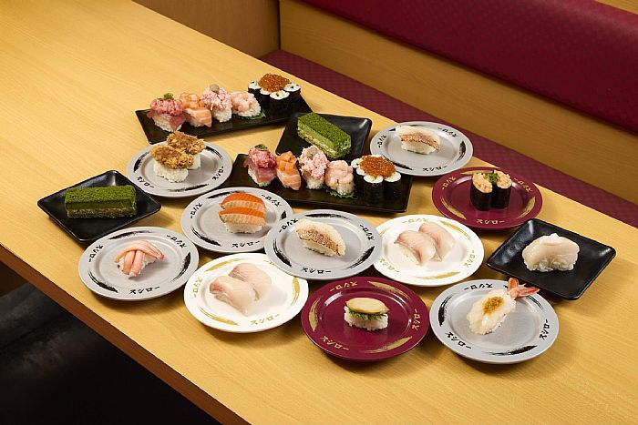 台灣壽司郎秉持「美味壽司,肚子飽飽;美味壽司,幸福滿滿」的理念,嚴選各式鮮魚、蟹、貝、蝦等海味食材,製作多款期間限定壽司。「豪滿足奢華海鮮拼盤」,集結豪華海鮮,精選極上鮪魚搭配鮪魚泥、生鮭魚佐以鮮切鮭魚丁、紅雪蟹肉結合蟹膏、甜蝦仁配鯡魚卵,小黃瓜卷加上鮭魚卵,吃來澎湃又美味。