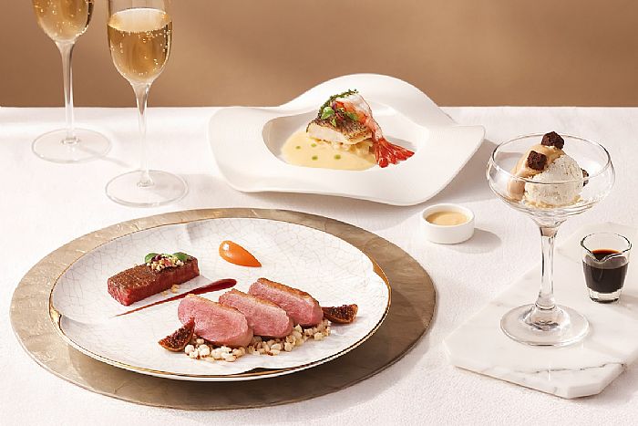 「夏慕尼」法式鐵板燒創立多年,高質感體驗深受消費者歡迎,是約會聚餐首選。迎來西洋節情人節與農曆春節連假檔期,「夏慕尼」精心打造「以愛為銘・雙人饗宴」,自2/10起販售至3/15,雙主餐嚴選日本A5和牛,利用鐵板高溫鎖住大理石紋油花,入口即化。搭配口感紮實的櫻桃鴨胸,佐以揉合桑葚果香的馬德拉紅酒醬汁(Madeira),再點綴藜麥薏仁飯與肉桂蘿蔔泥,交織出成熟大人味的戀愛層次感。