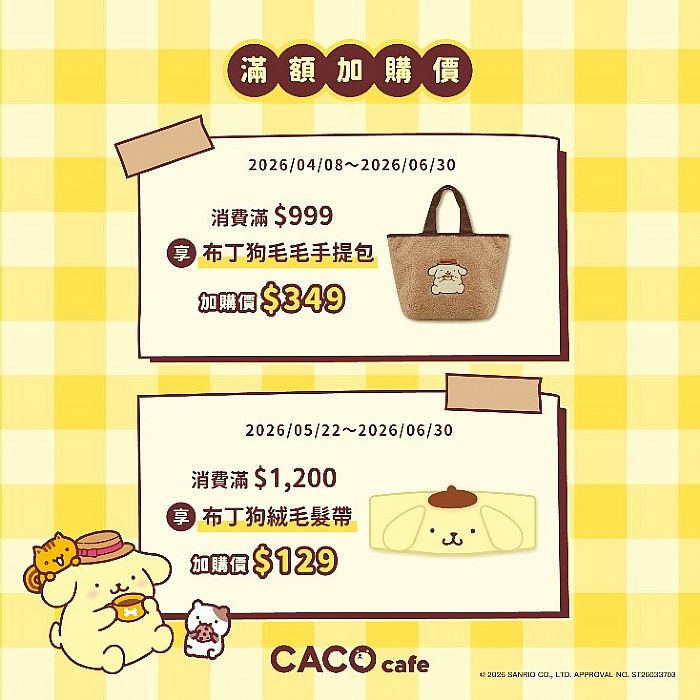 為回饋粉絲熱情,CACO cafe準備了兩波限量滿額加價購驚喜!