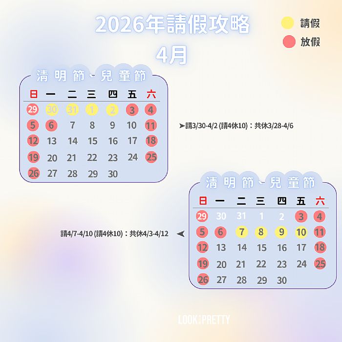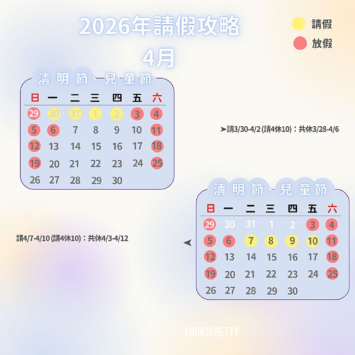 ➤請3/30-4/2 (請4休10)👉共休3/28-4/6