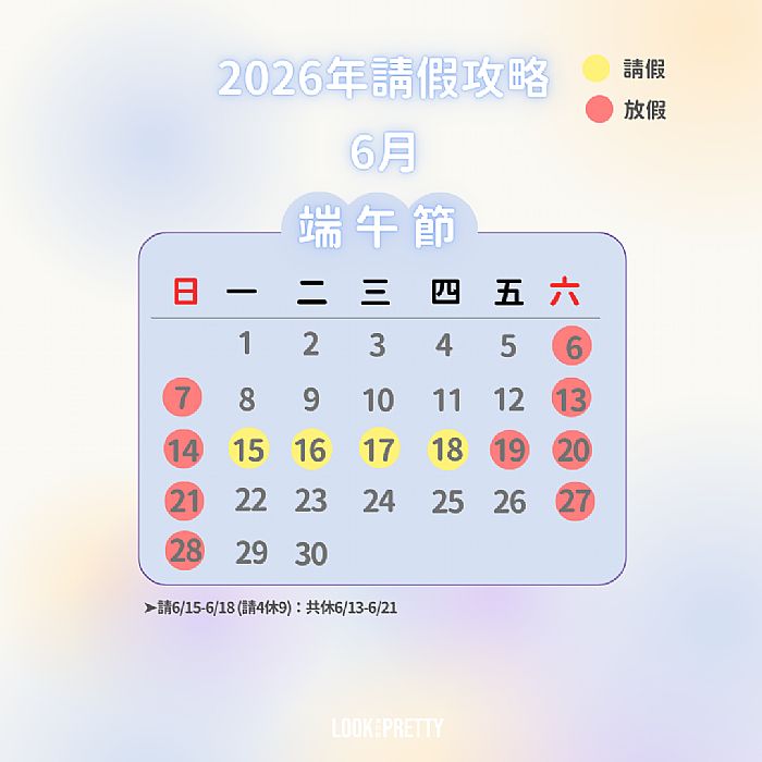 ➤請6/15-6/18 (請4休9)👉共休6/13-6/21
