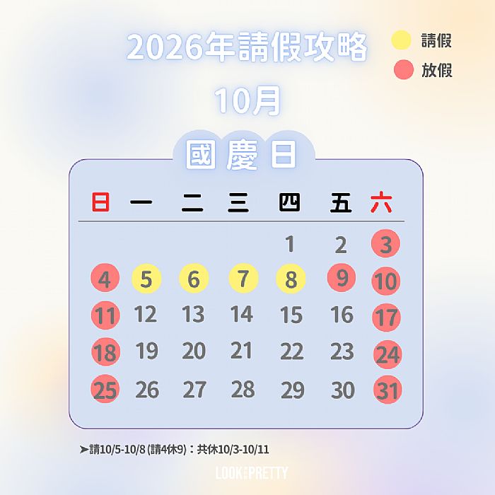 ➤請10/5-10/8 (請4休9)👉共休10/3-10/11
