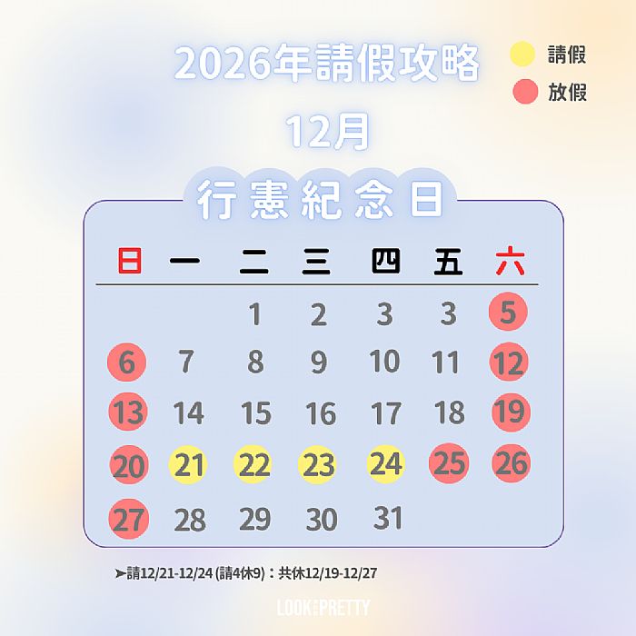 ➤請12/21-12/24 (請4休9)👉共休12/19-12/27