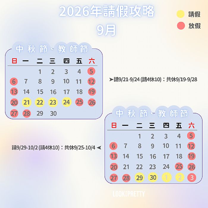 ➤請9/29-10/2 (請4休10)👉共休9/25-10/4