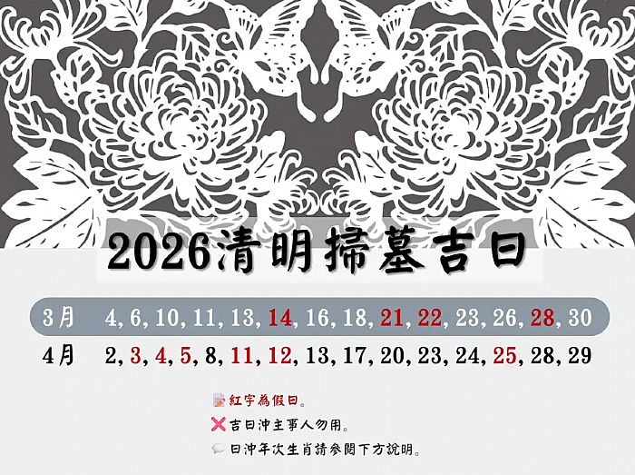 2026清明掃墓「4犯沖生肖」一定要注意!2026清明掃墓吉時吉日一次看,今年清明掃墓有哪幾大吉日,犯沖者如何趨吉避凶?為什麼掃墓完「別急著回家」?想要趨吉避凶掃墓前一定要看!(內文向下閱讀)