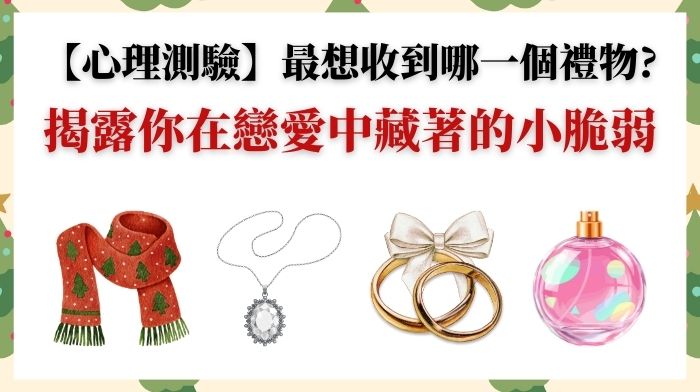 心測 12/07這次用「聖誕禮物」來看你的戀愛不安來源!憑第一直覺,選出你最想在聖誕節收到的禮物,看看你在戀愛中最容易焦慮、不安或胡思亂想的點是什麼