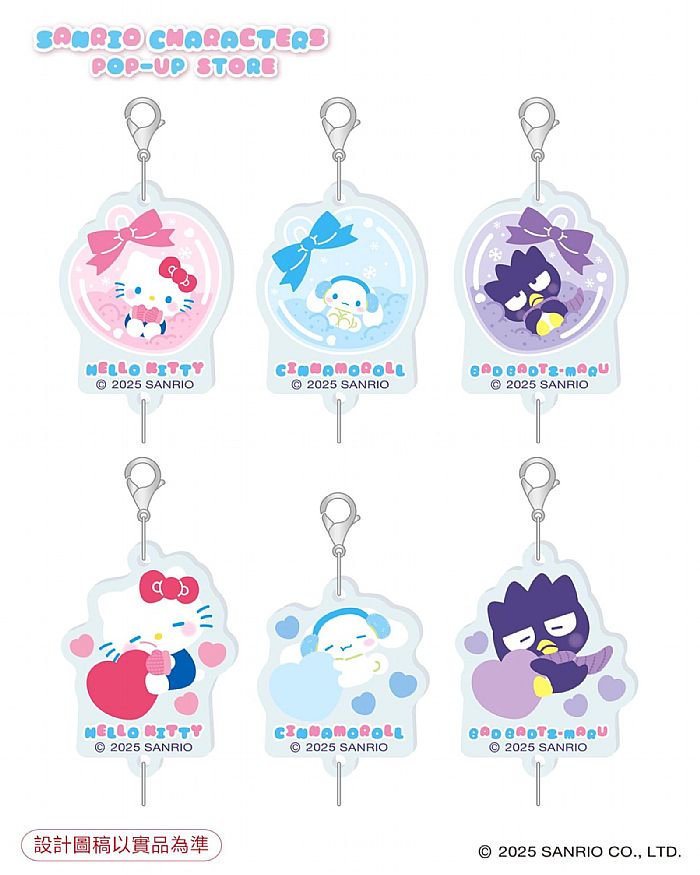 包包怎麼可以少了「壓克力吊飾」呢,無論是熟睡中的大耳狗喜拿還是乖乖坐在瓶中的Hello Kitty,六款通通都要帶回家啊!