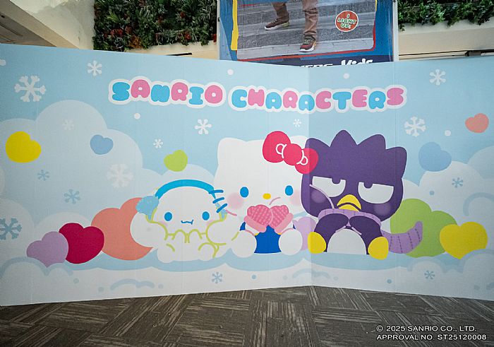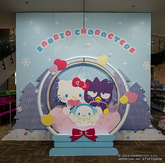 還沒到店遠處就看到有著Hello Kitty、酷企鵝與大耳狗喜拿排排站的「萌力三重奏」以溫暖笑容迎接粉絲,快來跟比人還要高的立牌合照唷!往旁邊走去,馬上就看到彷彿有魔力的「魔法旋轉柱區」,你看,坐在許願瓶中的Hello Kitty正擺出招牌萌樣看著你,到另一邊又可以看到甜甜笑著的大耳狗喜拿,每一面都要拍好拍滿啊!往內走去,看到「瓶中精靈區」有三個小可愛們變身瓶中精靈,呆萌又乖巧,誰看了不心動啊!旁邊的「冬日萌小隊區」則是在滿天雪花牆上,Hello Kitty戴上粉粉的手套在雪花下,防佛就在跟粉絲們說嗨呢,你忍得住不拍嗎!走進最後四大打卡點,等你拍下專屬回憶!