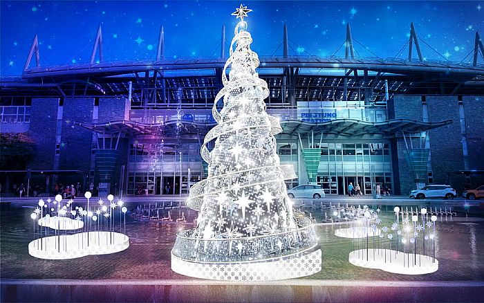最受歡迎的亮點,當然就是鐘塔下定時上演的雪花音樂秀,每天下午2點至晚上9點期間,每60分鐘就有一次機會讓你沐浴在紛飛的浪漫雪花之中,絕對是南台灣最受歡迎的打卡熱點之一。另外,高雄漢神巨蛋購物廣場也以迪士尼萌寵為主題,打造了高達16公尺的「光之歡樂聖誕樹」,集結了布魯托、柴郡貓等超人氣角色,為南台灣帶來超萌的聖誕氣息。